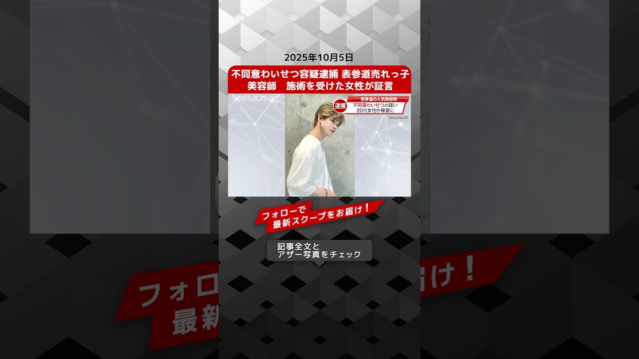 表参道の人気美容師・藤井庄吾容疑者が不同意わいせつの疑いで逮捕されました。被害者とされるのは店を訪れた20代の女性です。