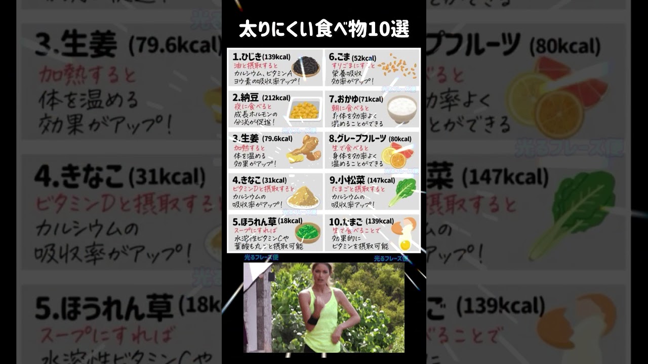 この動画では、太りにくい/満腹感を保ちつつカロリーを抑えられる食品を厳選して紹介します。