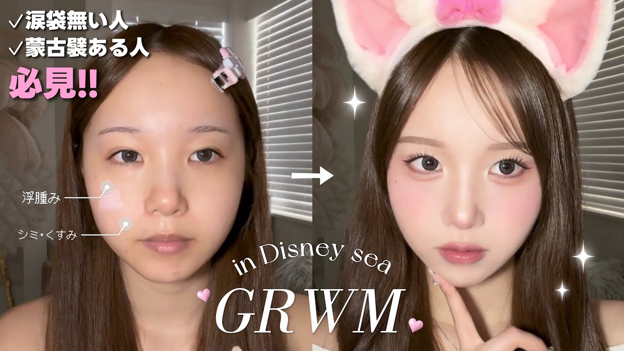 【GRWM】ディズニー爆盛れピンクメイク🐭🎀整形級の涙袋の描き方💉◝✩