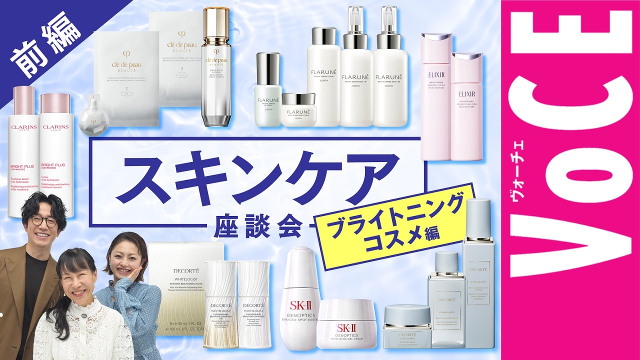 美容コラムニストの近藤須雅子さん、モデル・美容ジャーナリストの櫻井貴史さん、VOCE編集部三好さやかの3人でお送りするスキンケア座談会! 今回はこの時期一番気になるブライトニングコスメをピックアップ。最新のアイテムはなにがすごいの? 難しすぎるメカニズムや成分のお話を徹底解剖しちゃいます。