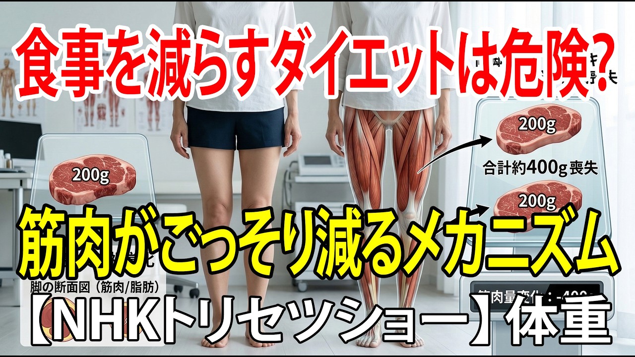 食事を減らすだけのダイエットがいかに危険か、そして筋肉が私たちの体にとってどれほど重要な役割を果たしているかを詳しく解説する動画です。